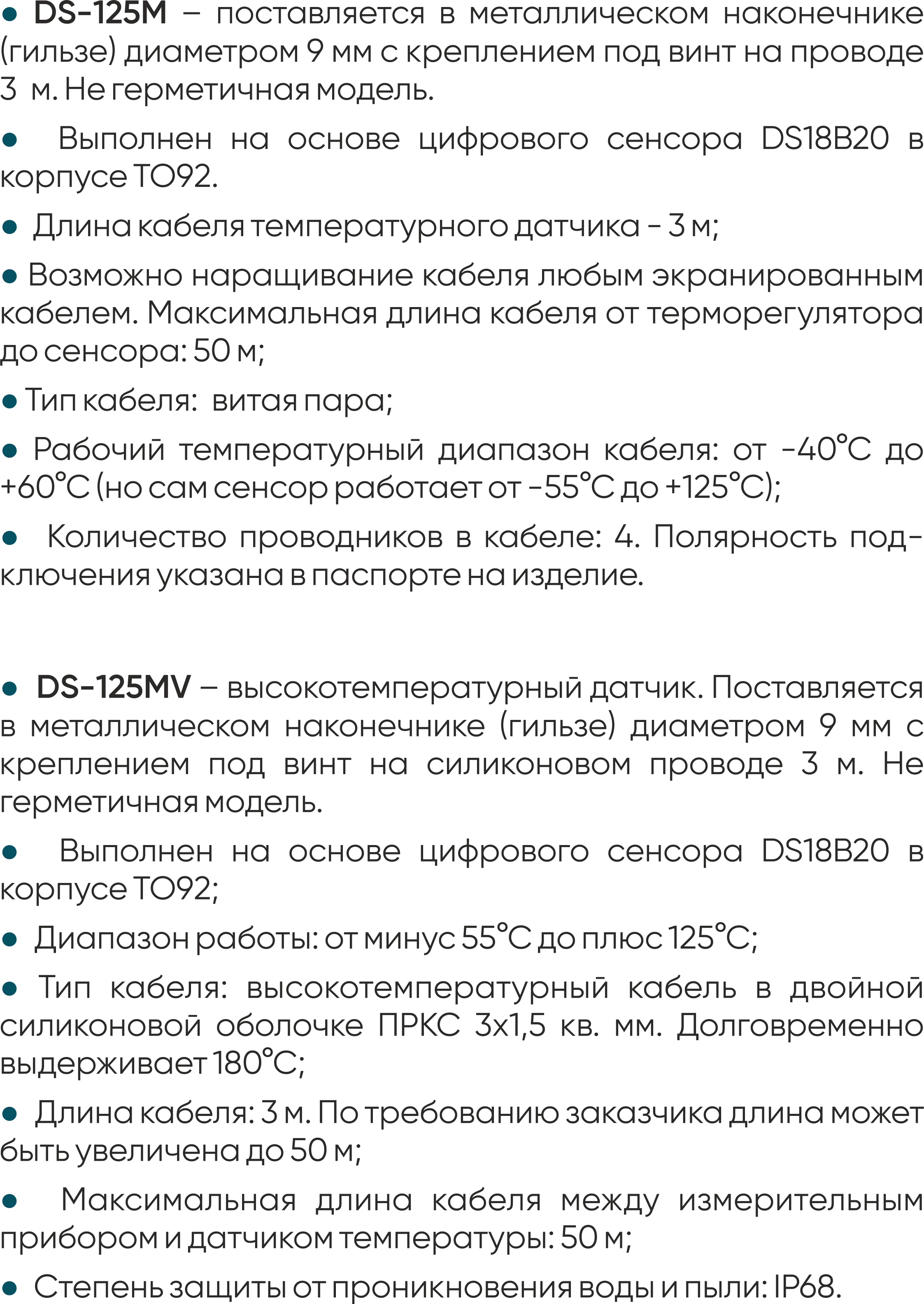 Для температур от +60°С до +125°С применяется высокотемпературный цифровой датчик DS-125MV.