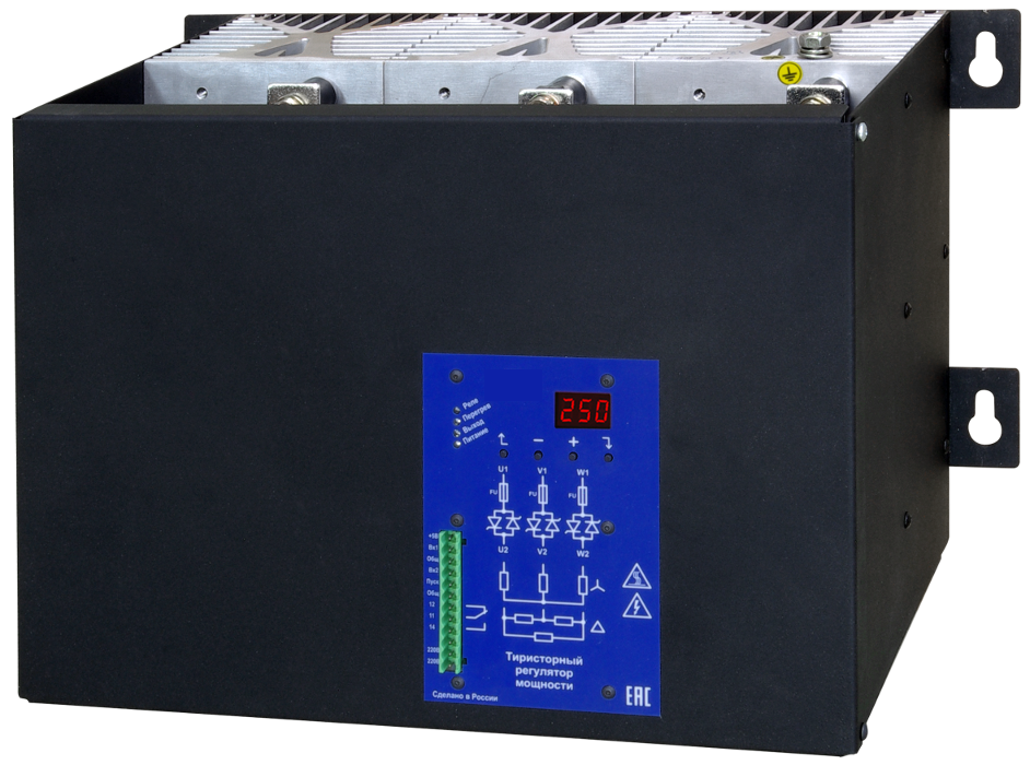 Регуляторы представляют собой модули тиристоров с охладителем, быстродействующие предохранители и контроллер управления, смонтированные в одном корпусе. Контроллер опрашивает внешние аналоговые входы и управляет блоком тиристоров.