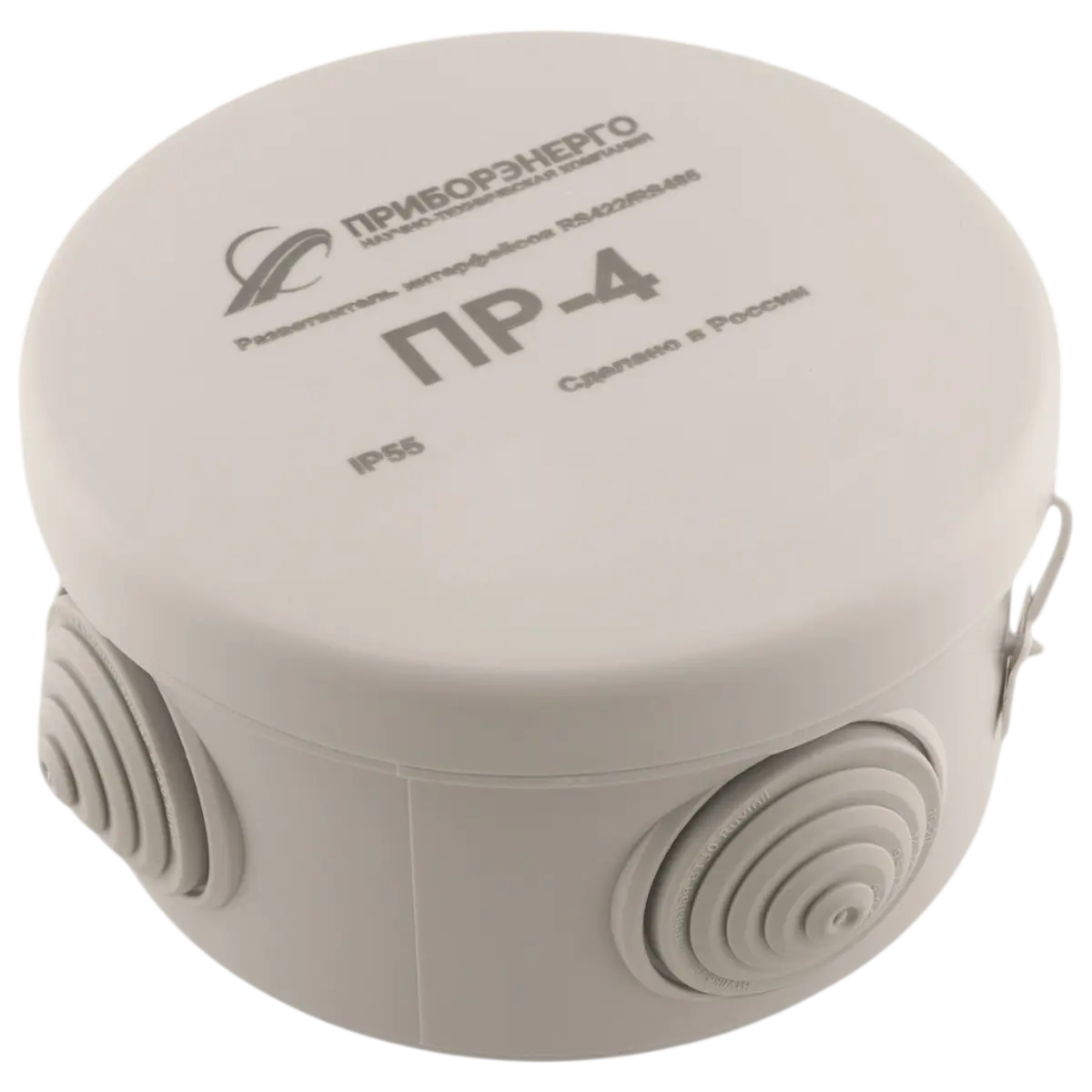 Разветвитель ПР-4 относится к классу пассивных разветвителей интерфейса RS-422/485 и представляет собой присоединительно-согласующее устройство приемников и передатчиков сигналов интерфейса RS-422/485. Корпус изготовлен из полипропилена. Кабельные вводы мембранного типа позволяют использовать кабели диаметром от 3 до 20 мм.