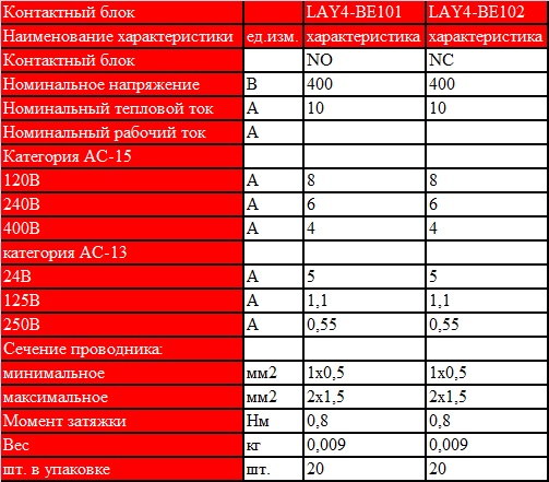 Контактный блок | LAY4-BE101 | LAY4-BE102 | |