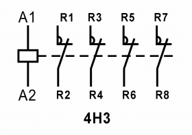 Устройство имеет 4 нормально разомкнутых (НО) силовых контакта и 4 нормально замкнутых (НЗ) силовых контакта, что обеспечивает широкий спектр применения.