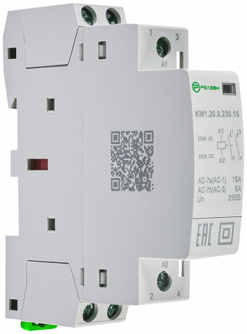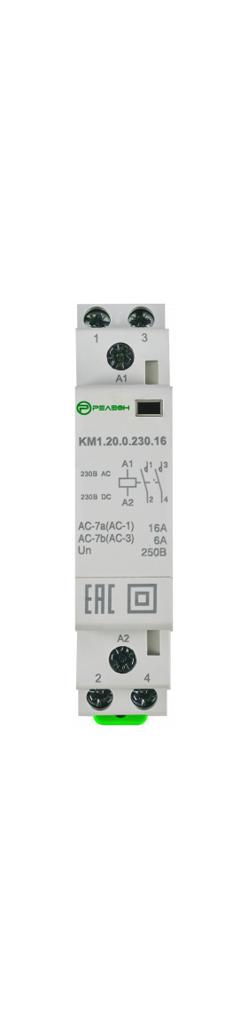 Контактор оснащен двумя нормально разомкнутыми (НО) силовыми контактами, что позволяет одновременно управлять двумя электрическими цепями. Номинальный рабочий ток составляет 16А, что делает его подходящим для большинства бытовых и коммерческих приложений.