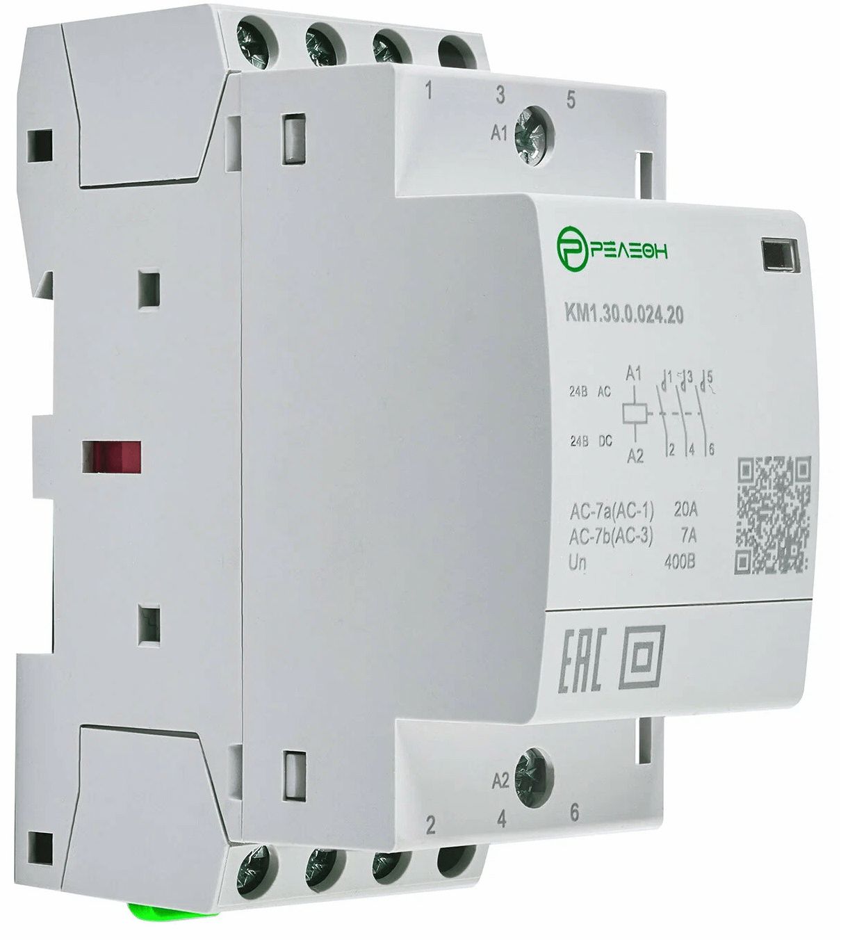 Контактор имеет номинальный рабочий ток 20А, что позволяет использовать его для управления мощными электрическими цепями.