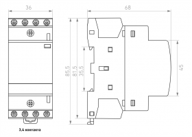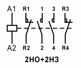 Модульный контактор обладает двумя нормально разомкнутыми (НО) силовыми контактами и двумя нормально замкнутыми (НЗ) контактами. Это позволяет использовать его в различных электрических схемах и обеспечивает гибкость в управлении.