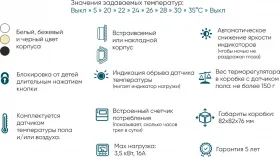 - Рекомендуется для работы с пленочными теплыми полами, а также с настенными и потолочными системами обогрева;