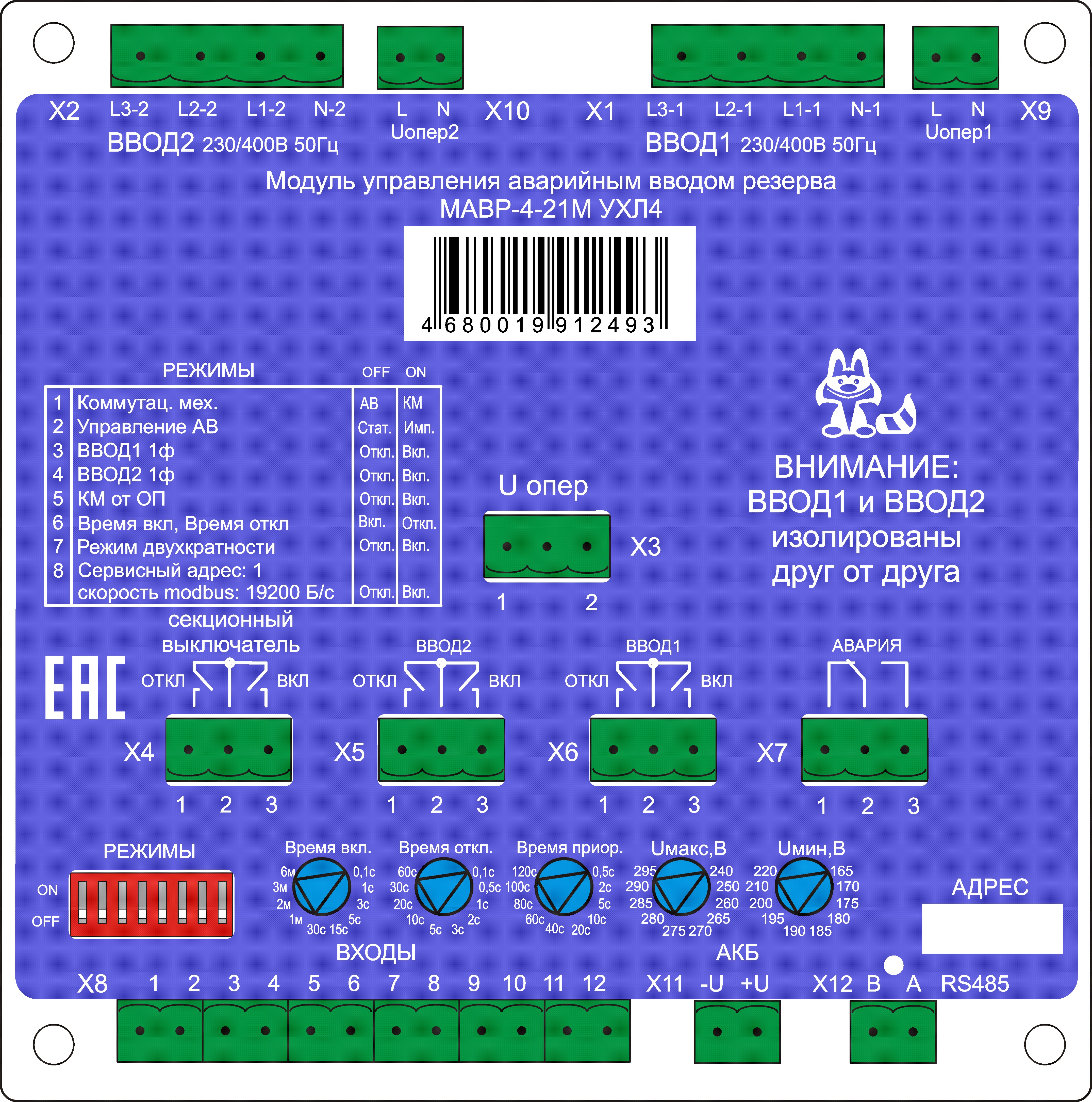 Устройство позволяет осуществлять резервирование питания нагрузки в нескольких режимах работы Ввода 1 и Ввода 2: