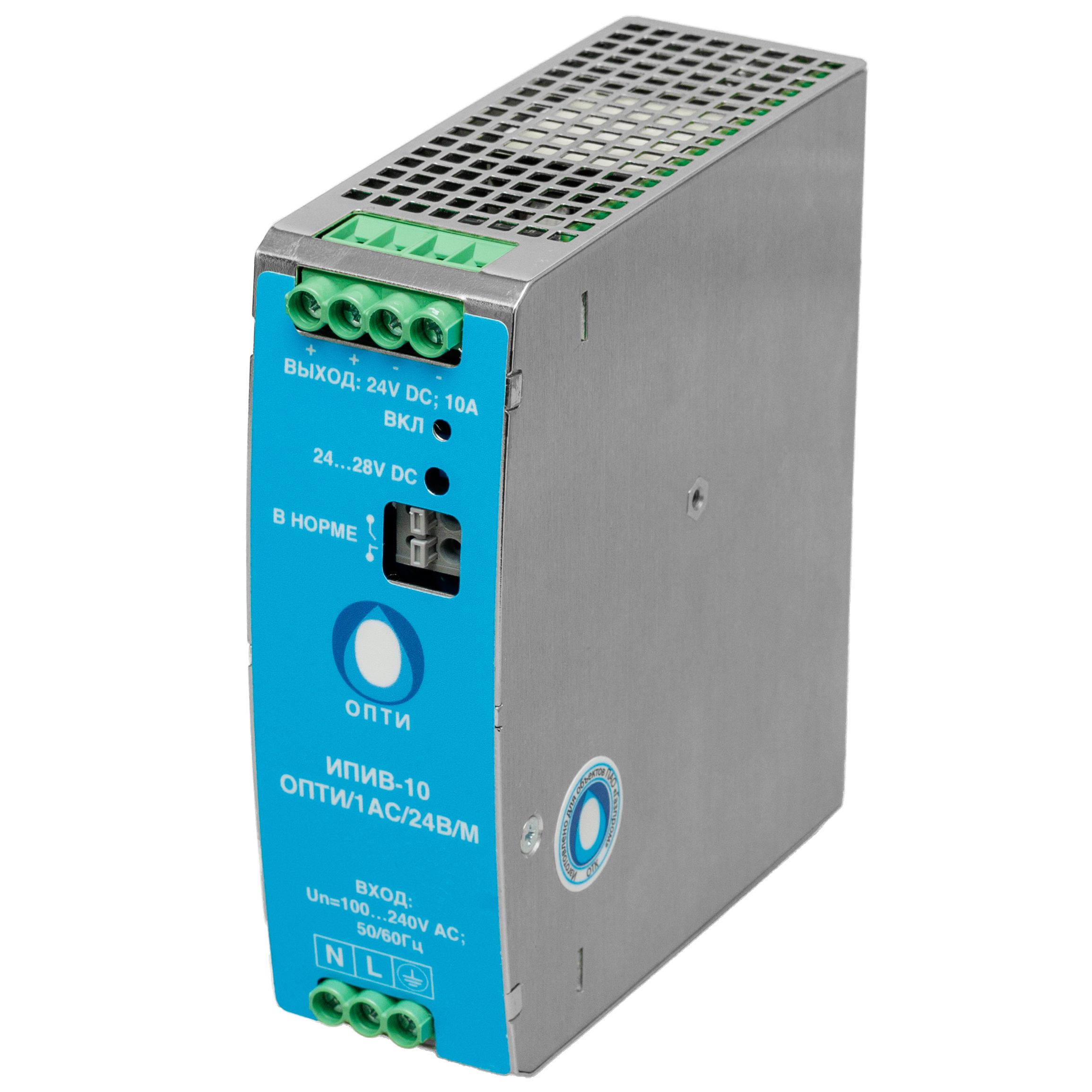 | 24 В DC | 10 А | 15 А (3 с) | ИПИВ-10-ОПТИ/1АС/24В/М | 5199096-М |