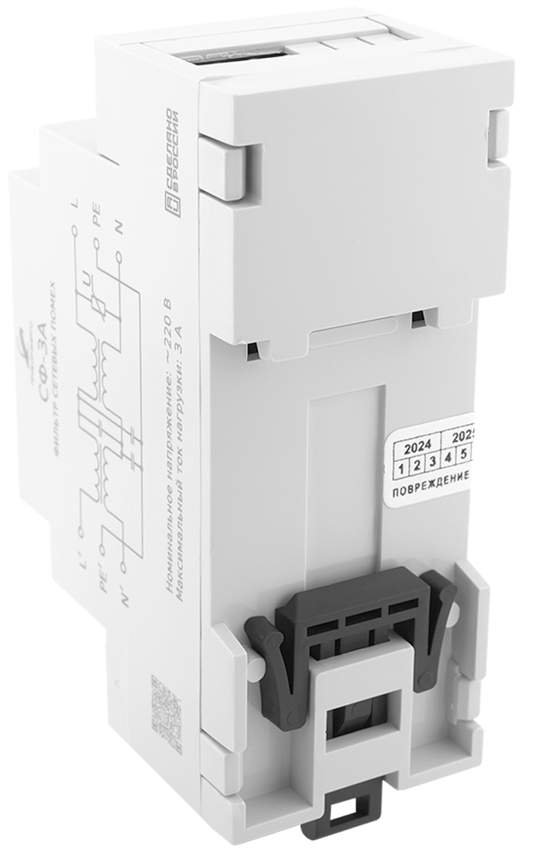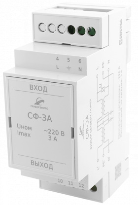 Крепиться сетевой фильтр на DIN-рейку, выпускается в корпусе из пластика, не поддерживающего горение.