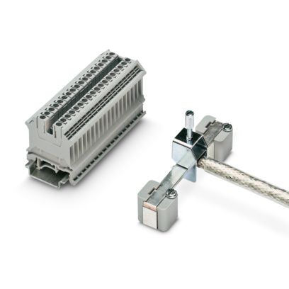 Опора, из изоляционного материала, со стопорным винтом, используется на выбор для сборной шины 3 x 10 мм или 6 х 6 мм, цвет: серый