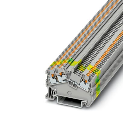Проходные клеммы, номинальное напряжение: 500 В, номинальный ток: 17,5 A, количество точек подсоединения: 3, тип подключения: Зажимы Push-in, Расчетное сечение: 1,5 мм2, 1. ярус, cечение: 0,14 мм2 - 1,5 мм2, тип монтажа: NS 35/7,5, NS 35/15, цвет: cерый