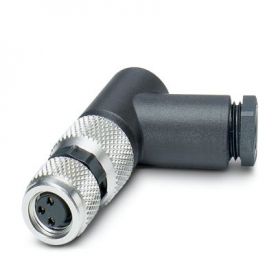 Штекерный соединитель, Универсальный, 3-контактный, Гнездо угловой M8, кодирование: A, Винтовые зажимы, материал накатанной гайки: латунь, никелированный, наружный диаметр проводника 3,5 мм ... 5 мм