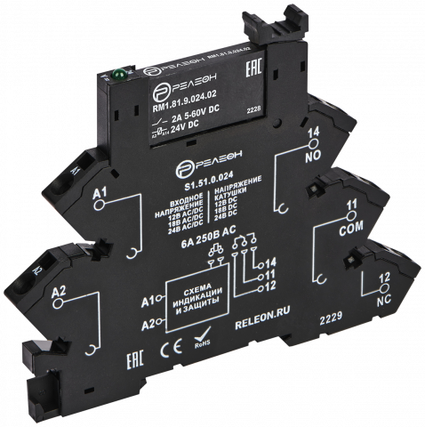Интерфейсный модуль твердотельного реле (~/= 24В AC/DC) выходная цепь 1НО 2А, 48-280В AC RM1.81.0.024.02