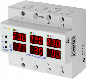 Устройство защиты УЗМ-3-63Ц (далее устройство) предназначено для отключения нагрузки от трёхфазной сети с нейтралью при аварийных ситуациях. А именно при напряжении выше или ниже установленных порогов, а также при превышении порога отключения по потребляемой мощности, обрыве любой из трех фаз или нейтрали, при нарушении чередования, слипании фаз и отклонении частоты сети (важно при питании от генератора). Устройство защищает нагрузку от высоковольтных импульсов в сети встроенными варисторами, может осуществлять защиту сети от длительной перегрузки по потребляемой мощности.